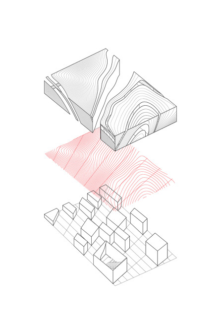 This project is an exploration of the graphic nature of topography lines. These lines, regarded as man’s 2-dimensional, rational interpretation of nature, were looked at in terms of scalar and formal differences.